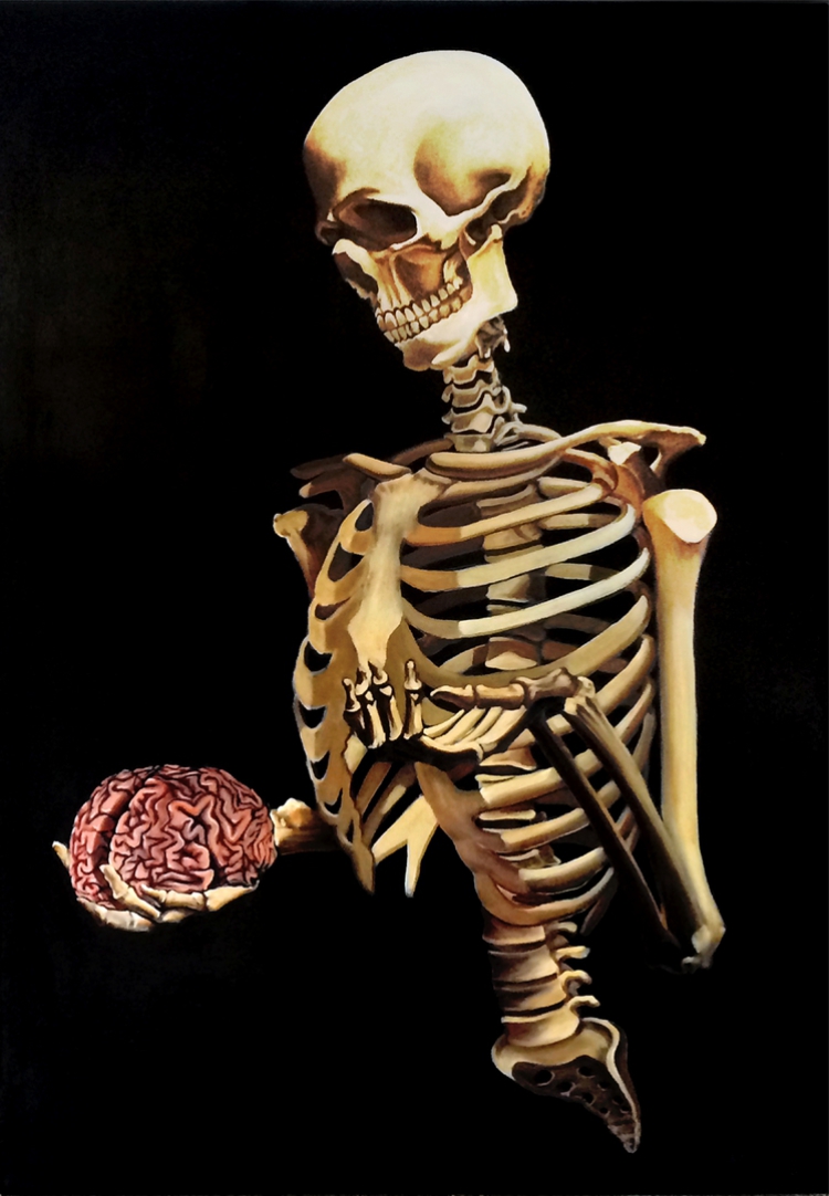 I consider the piece to be the 2nd part with W5. As part of the inspiration for this to part piece was a song lyric I once heard "What the head makes cloudy, the heart makes very clear" This figure looks down on the human brain in a gesture of undersatnding. The brain operates in a logical way, we understand it's functions and it works in many ways subconsciously without our permission. The 2 pieces display very interestingly together.